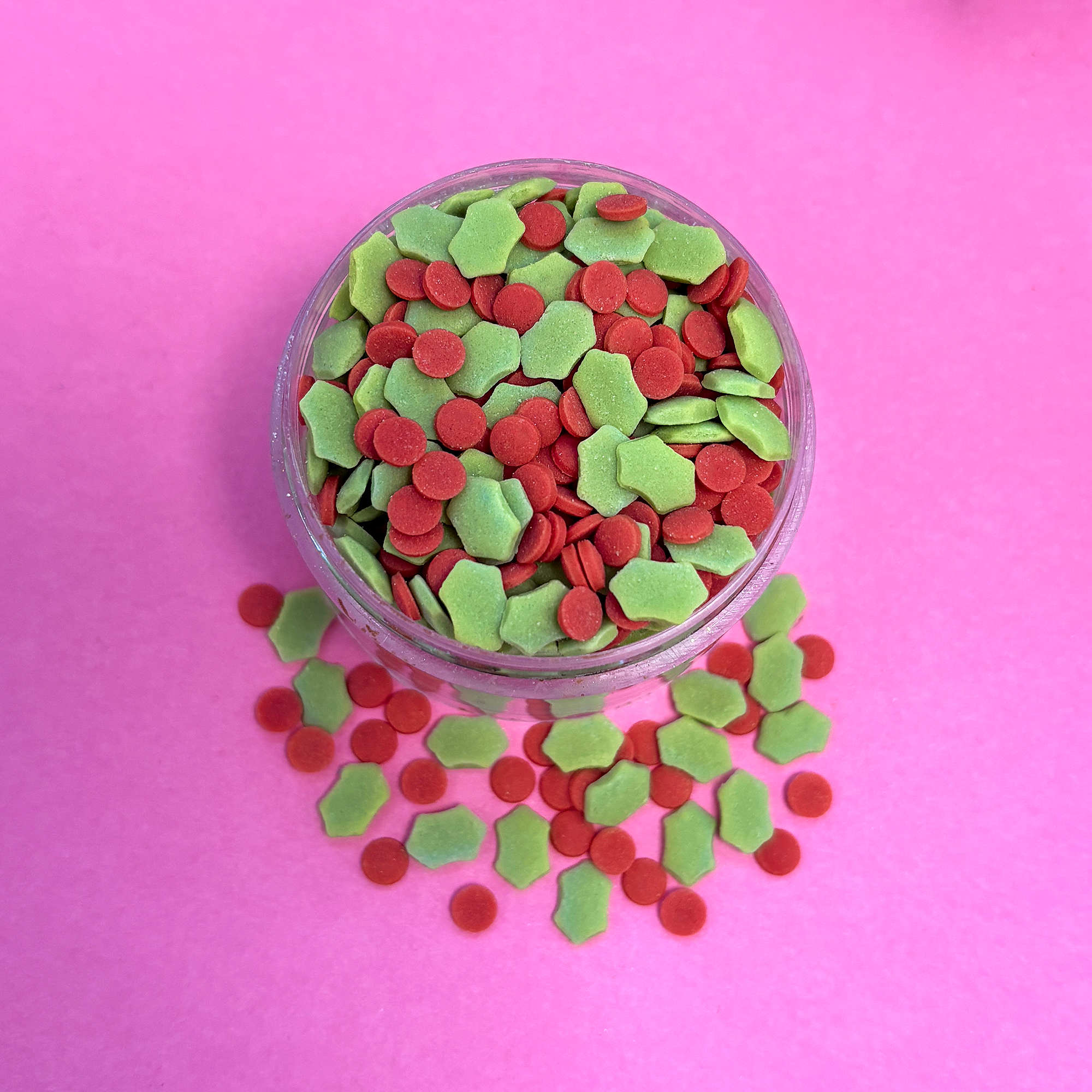 Add festive charm to your Christmas bakes with our Hollies and Berries Sprinkles, a joyful blend of sugar shapes and sprinkles in classic holiday colours. Featuring green holly leaves and red berries, this bake-stable mix is perfect for cupcakes, cookies, cakes, and festive desserts. Whether you’re decorating with children or preparing show-stopping holiday treats, these merry sprinkles bring sparkle, texture, and cheer to every Christmas creation.