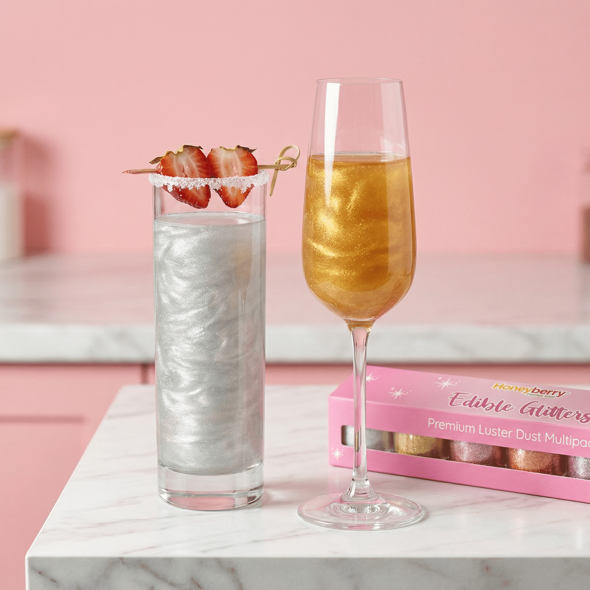 Turn up the glamour with our Warm Colours Glitter Multipack. Featuring a curated collection of edible glitters in Rose Punch, Sunset Orange, Rose Gold, Purple Magic, Sparkle Gold, Shimmer White. This edible glitter set is ideal for festive bakes, autumn cakes, and show-stopping celebration desserts. Easy to sprinkle and guaranteed to add sparkle, these glitters are a must-have for bakers who love to make their creations shine.