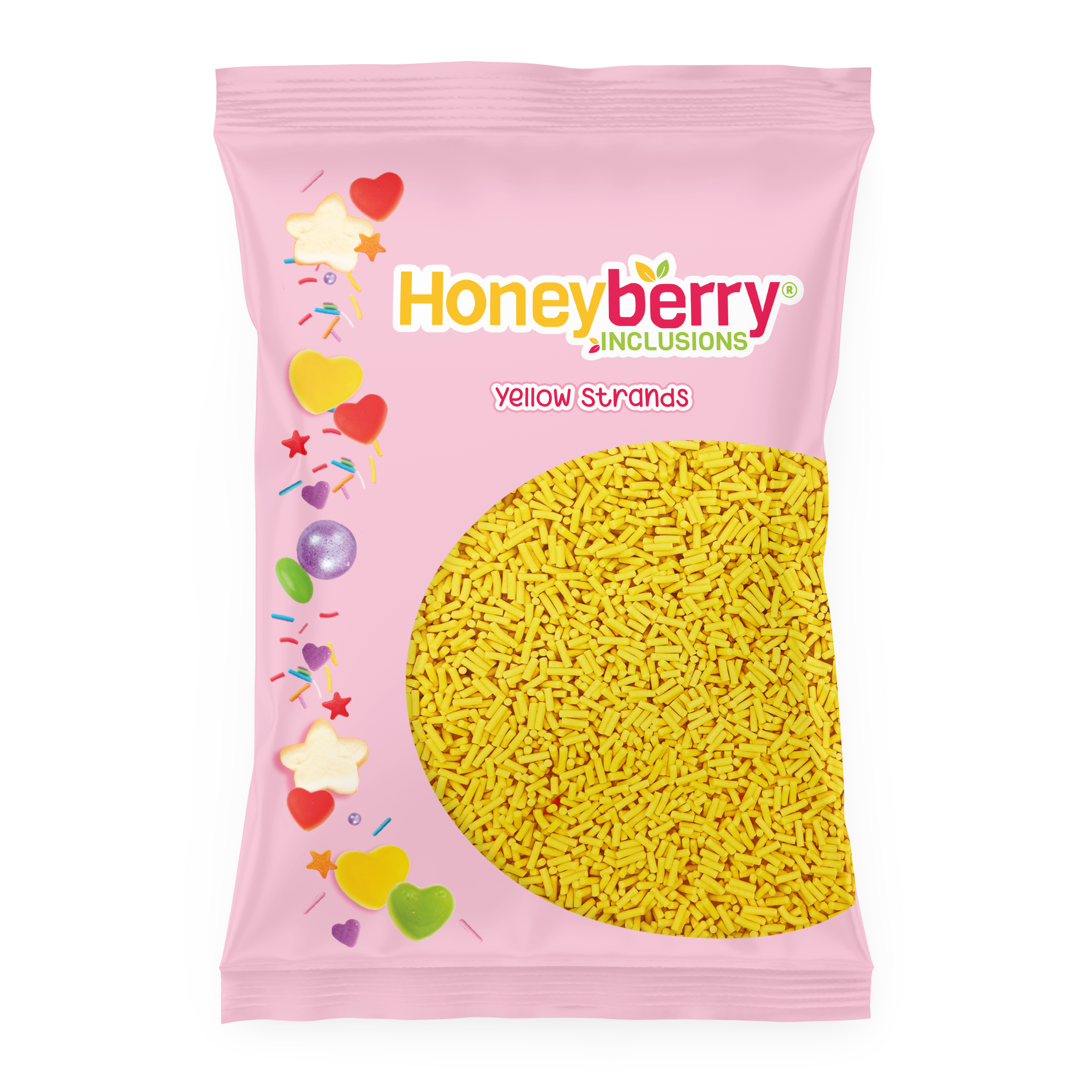 Bring sunshine to your baking with our Yellow Sugar Strand Sprinkles. These bright sprinkles add a cheerful finish to cupcakes, birthday cakes, cookies, and ice cream. Perfect for Easter, summer parties, or children’s celebrations, they instantly lift any bake with their happy colour. Pair with blue for bold contrasts, or with pastel shades for a softer design. With their bake-stable crunchy texture and reliable colour hold, they’re a decorating essential.